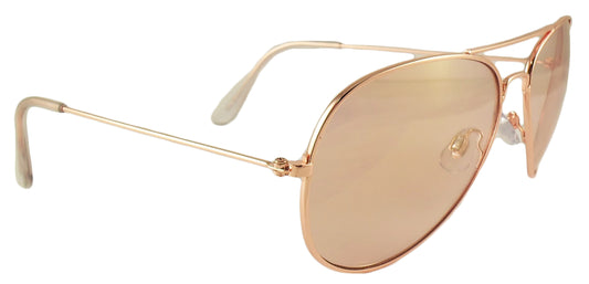 Rose Gold Aviator Sunglasses - Pink Tinted Lens - Metal Frame Retro Style - UV400