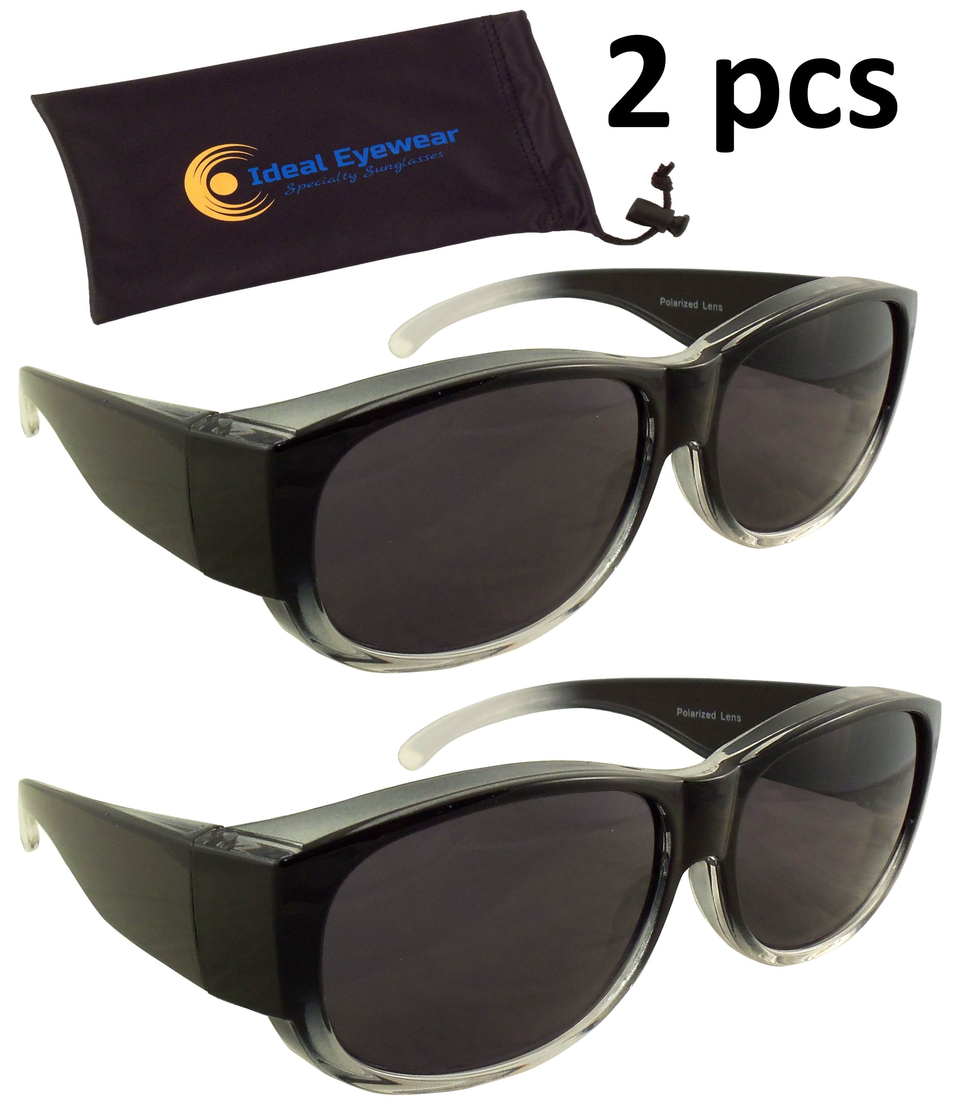 Womens Black Ombre Fit Over Sunglasses - Wear Over Glasses - Polarized Lenses (2 pack)